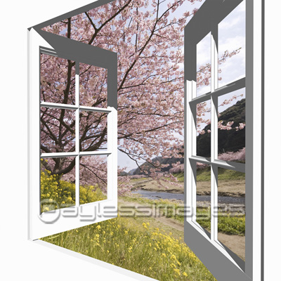 窓から桜 商用利用可能な写真素材 イラスト素材ならストックフォトの定額制ペイレスイメージズ